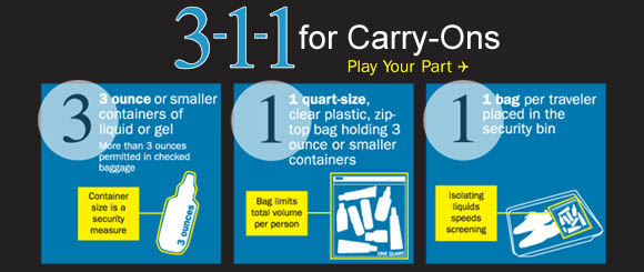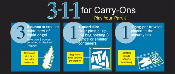 3-1-1規(guī)定,指的就是美國(guó)運(yùn)輸安全管理局于2006年8月10日開始執(zhí)行的、針對(duì)液體、噴霧劑和凝膠的管理規(guī)定。規(guī)定里對(duì)每位乘客可以攜帶上述物品的總量做了限制,并且要求乘客在過(guò)安檢時(shí),將上述物品單獨(dú)放在一個(gè)包里過(guò)X光檢查,以加快通過(guò)安檢的速度。
