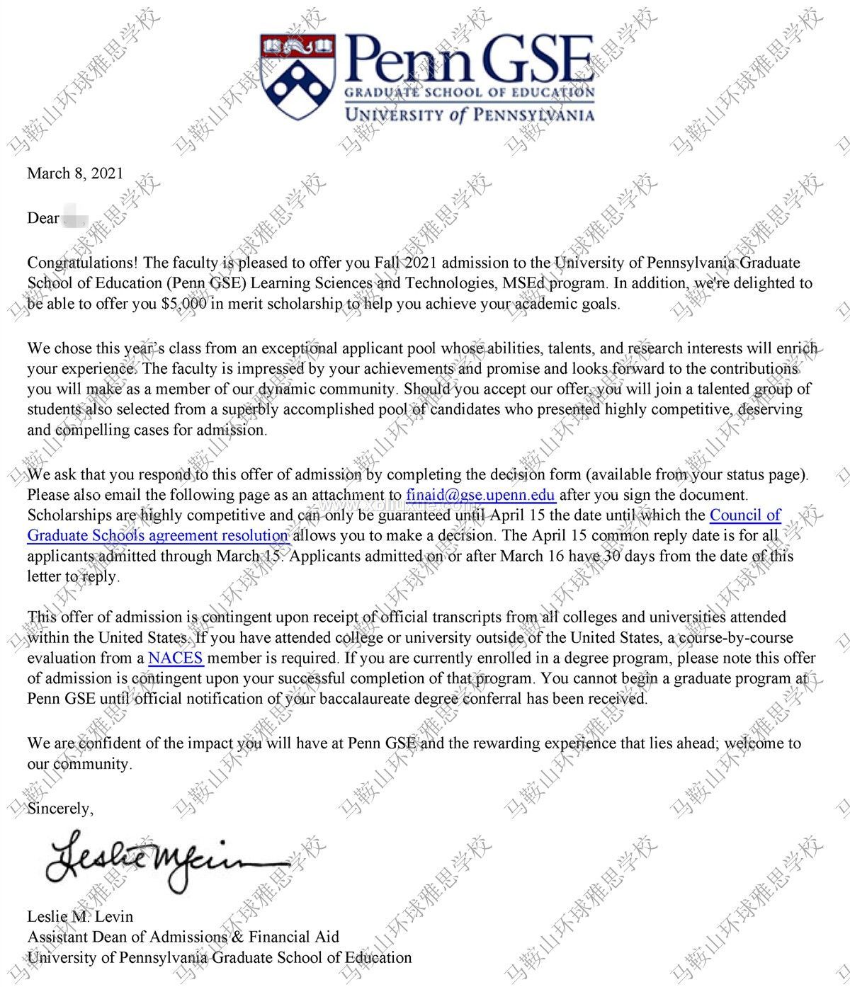 美國賓夕法尼亞大學(xué)教育學(xué)專業(yè)碩士offer