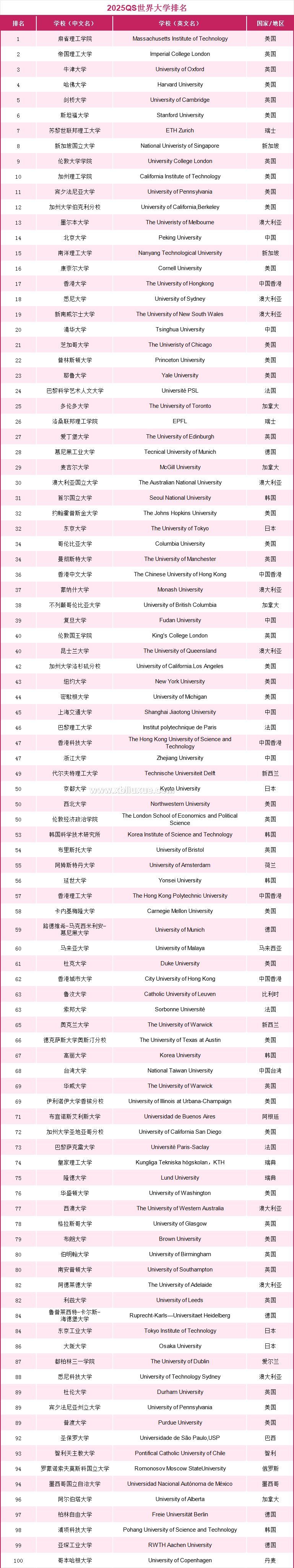 2024年6月5日,國際高等教育研究機構(gòu)QS Quacquarelli Symonds正式發(fā)布了2025QS世界大學排名!該排名是唯一一個同時將就業(yè)能力與可持續(xù)發(fā)展納入評價體系的排名。本次排名是QS自發(fā)布世界大學排名以來的第二十一次排名。