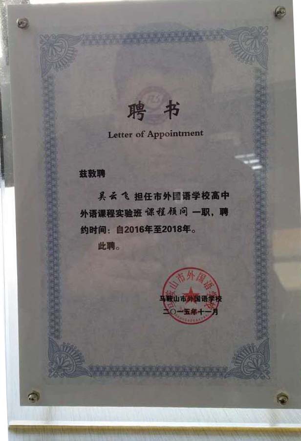 祝賀我校常務副校長吳云飛先生受聘馬鞍山外國語學校