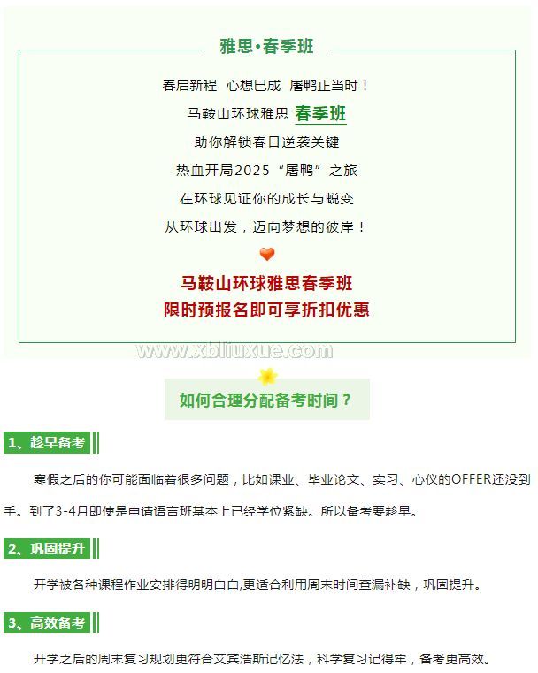 春啟新程 心想巳成丨馬鞍山環(huán)球雅思春季班開始報名!